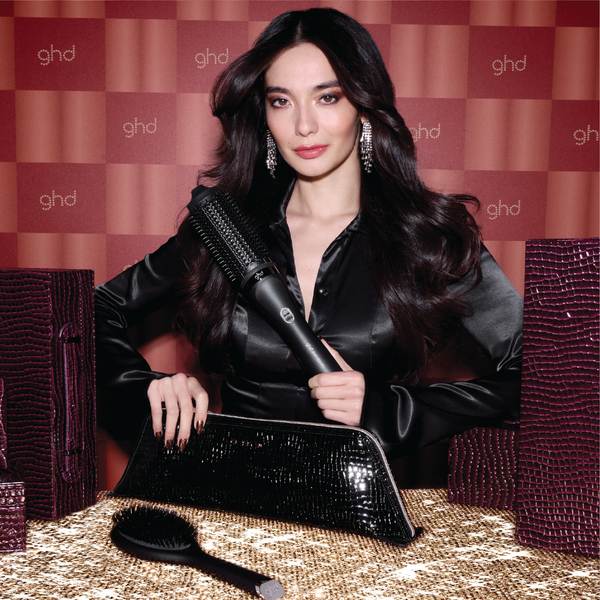 Check in to glamour this festive season and embrace seductive and timeless good hair days with a luxurious collection designed to transform your styling routine with ease and elegance. This indulgent gift set features the ghd duet blowdry professional 2-in-1 hair dryer brush, the ghd Dresser oval dressing brush, a heat-resistant bag and mat² and a cleaning brush, bringing you everything you need for effortless, salon-worthy blow dries at home.