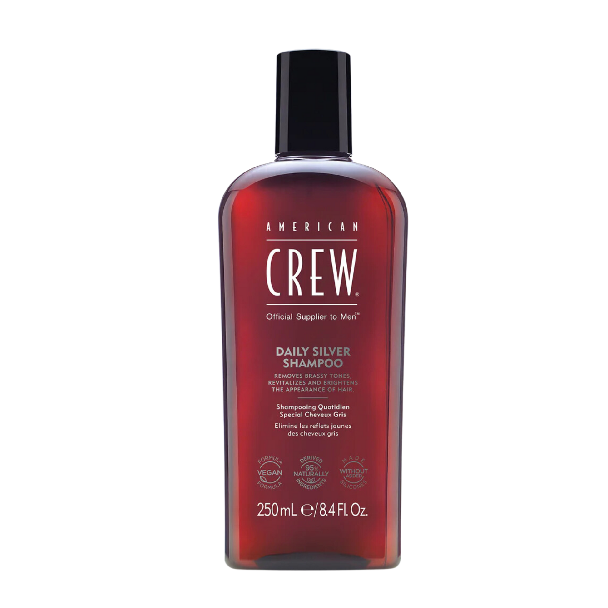 The American Crew Daily Silver Shampoo will help remove brassy, yellow tones from grey and white hair. Revitalises and brightens the appearance of hair. Vegan formula. Formulated without adding silicones.