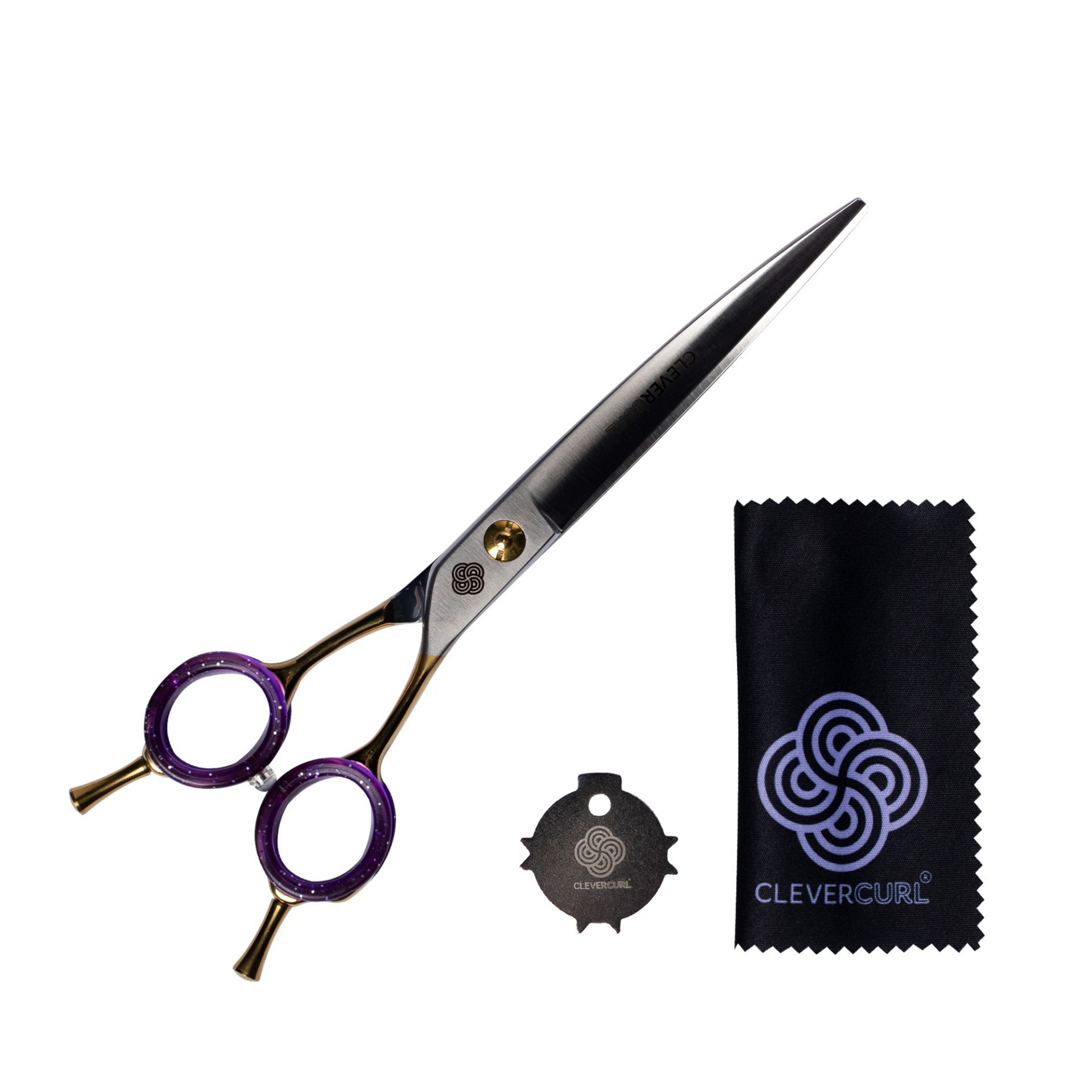 The Clever Curl Curved Scissors feature unique curved blades designed to expertly cut and shape rounded lines in curly and textured hair. The Clever Curl Curved Scissors are available in both 7 inch and 8 inch, and are skillfully crafted from Japanese Steel. They feature ergonomic ring grips and a finger rest, hand finished to provide ultimate comfort and control. Take your precision curl cutting to the next level with Clever Curl curved scissors, as demonstrated in Clever Curl’s Masterclass education events!