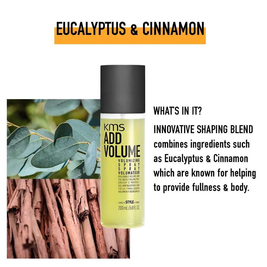 The KMS Add Volume Volumizing Spray is a thickening gel spray that creates buildable volume and intense fullness for limp and fine hair. It works to provide up to 70% more volume, for up to 72 hours. It has a hold level of 2/5 and shine level of 2/5.