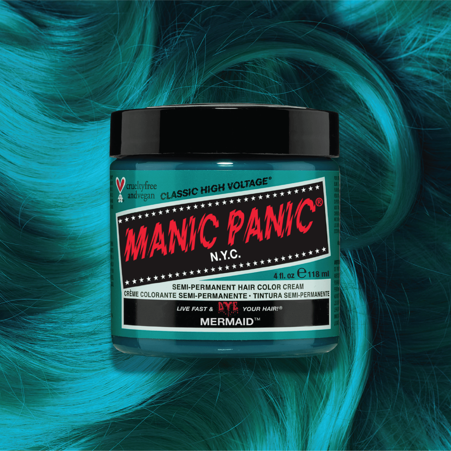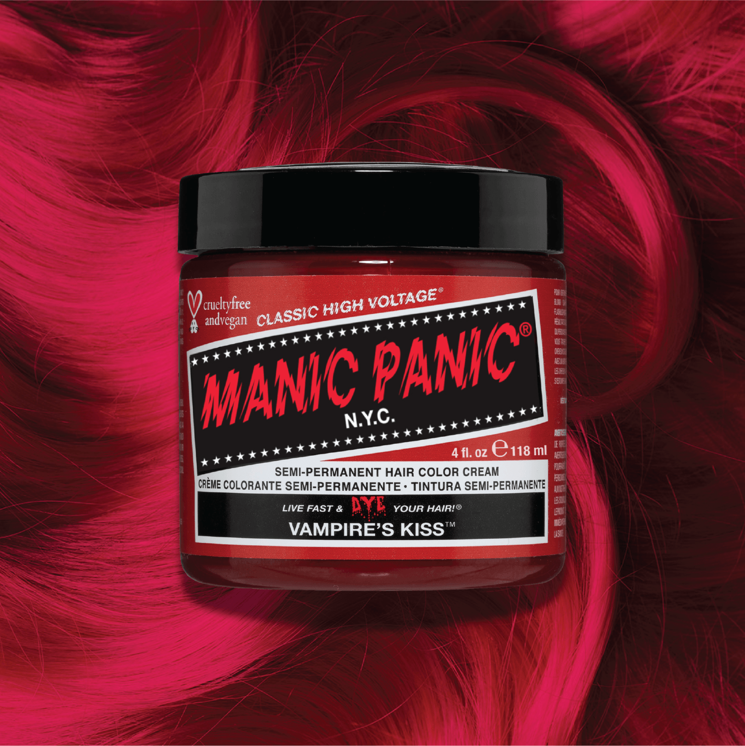 Manic Panic Classic High Voltage® is a semi-permanent/stain hair colour. It will fade gradually with each wash. It is made from vegan ingredients and not tested on animals.